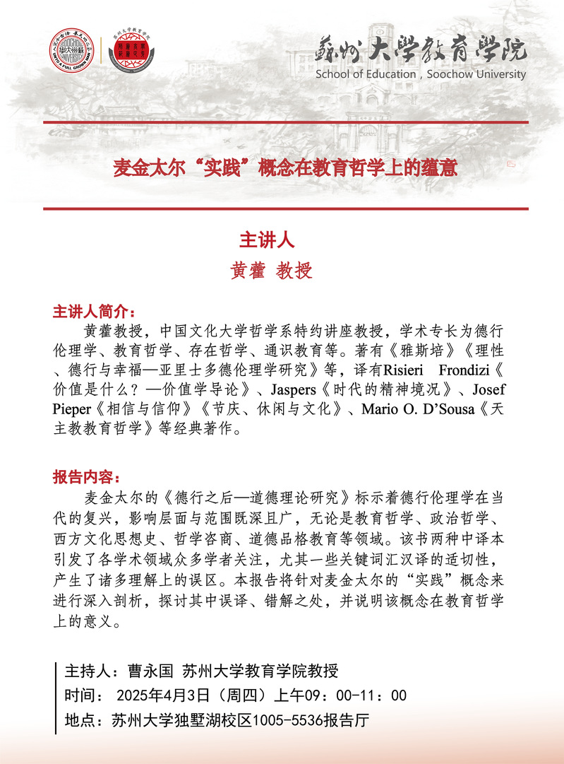 学术报告:麦金太尔“实践”概念在教育哲学上的蕴意[4.3]